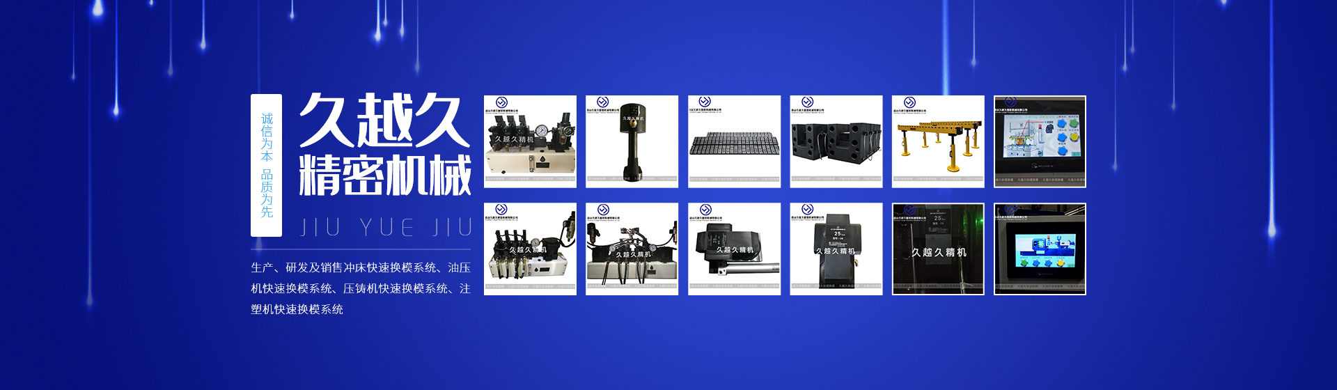 昆山久越久精密机械有限公司位于苏州市昆山市周市镇。公司长期坚持“诚信为本、品质为先,自主创新、科学发展”的经营理念,从事生产、研发及销售冲床快速换模系统、油压机快速换模系统、压铸机快速换模系统、注塑机快速换模系统。昆山久越久精密机械有限公司自创办以来十分重视创新发展和质量管理,凭借雄厚的技术力量、齐全的机加工设备和先进的管理团队,确保为客户提供可靠的售前、售中、售后一条龙的服务。创建以来本公司产品已在快速换模系统领域得到了良好的口碑和信誉,公司本着 “信誉至上、质量至上”的经营方针与很多知名客户建立了良好的长期合作关系。公司提供OEM加工代贴牌服务,诚挚欢迎各新老客户、中间商、代理商咨询合作!